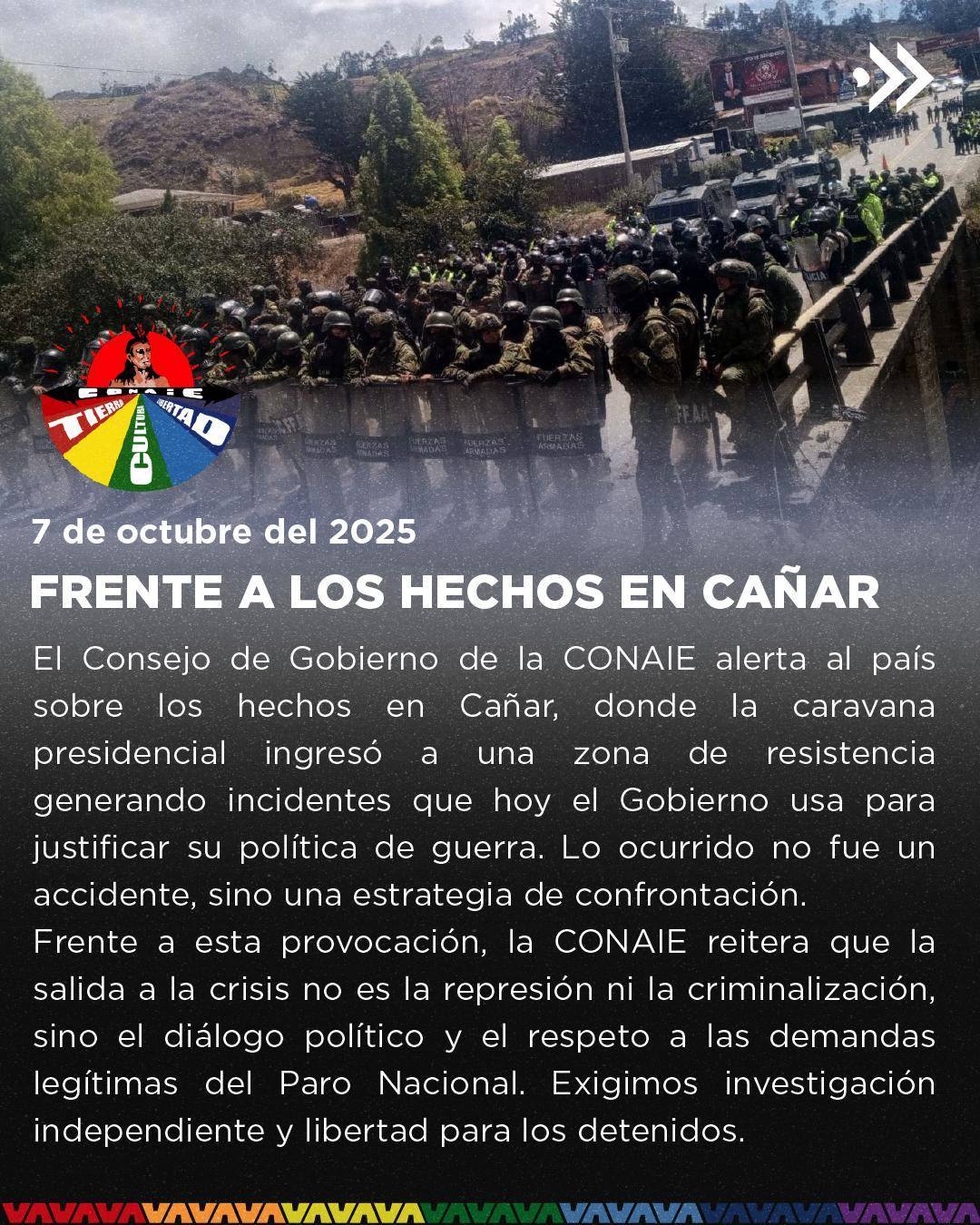 La Conaie también alertó sobre supuestos actos de «falsa bandera» para criminalizar al movimiento indígena y desviar la atención de la crisis económica y política profunda que enfrenta el país.