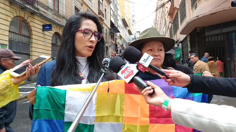 La Paz 8 noviembre 2025 - La concejal Wilma Alanoca y Juana Machicado, dirigente de Mujeres Bartolina Sisa y representante del Instrumento Político Evo Pueblo, expresaron su enérgico rechazo al retiro de la Wiphala del Palacio Quemado. Consideran esta acción como un agravio directo al movimiento indígena, campesino y popular de Bolivia.