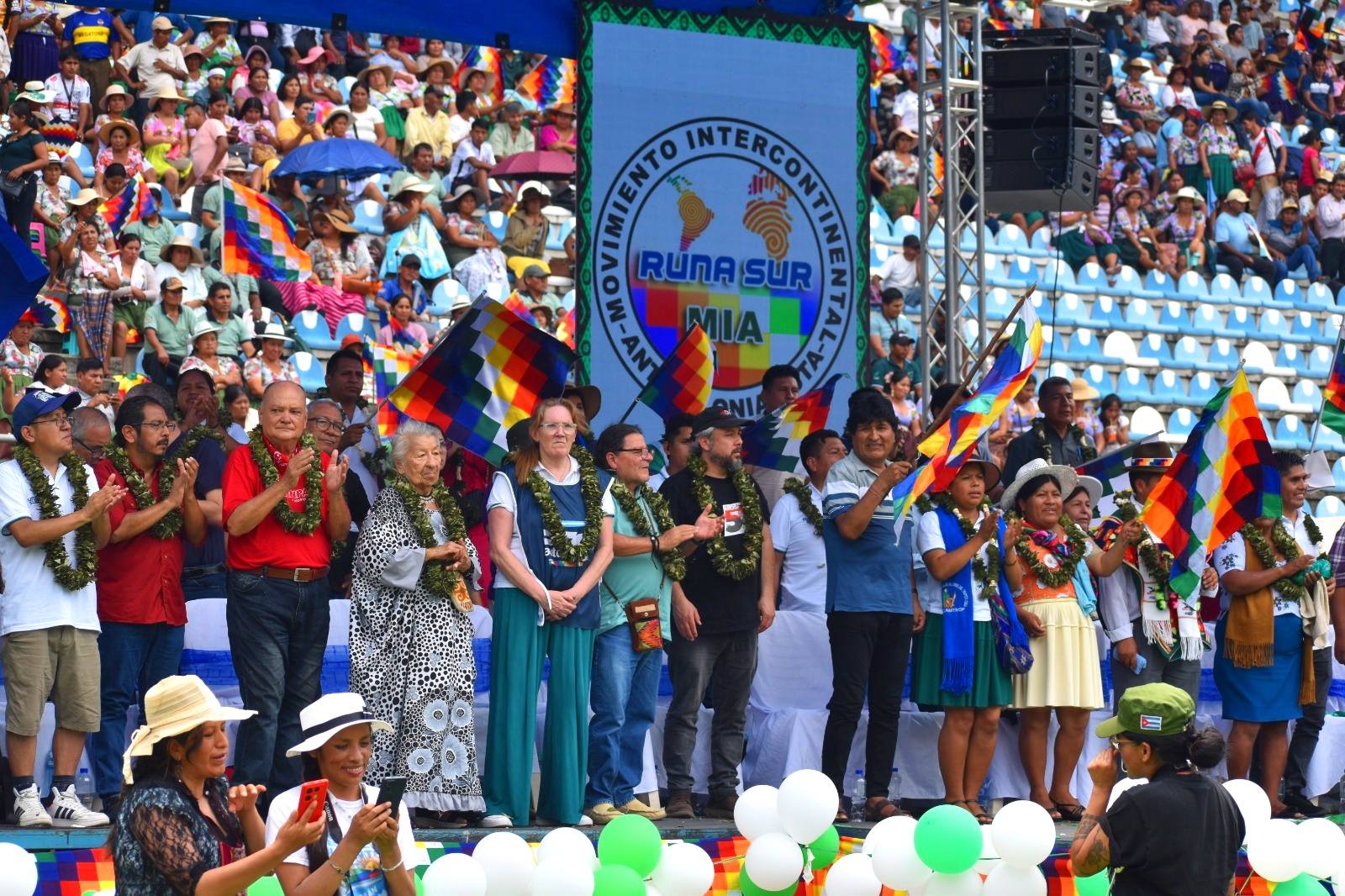 Villa Tunari 13 octubre 2025 - Durante el primer Encuentro Internacional del Movimiento Intercontinental Anticolonial (MIA), celebrado el 11 y 12 de octubre en el Coliseo y Estadio del Centro de Alto Rendimiento (CAR) de Villa Tunari, Trópico de Cochabamba, la delegación chilena, representada por Valentina Louge, leyó la resolución de solidaridad con la República Bolivariana de Venezuela.