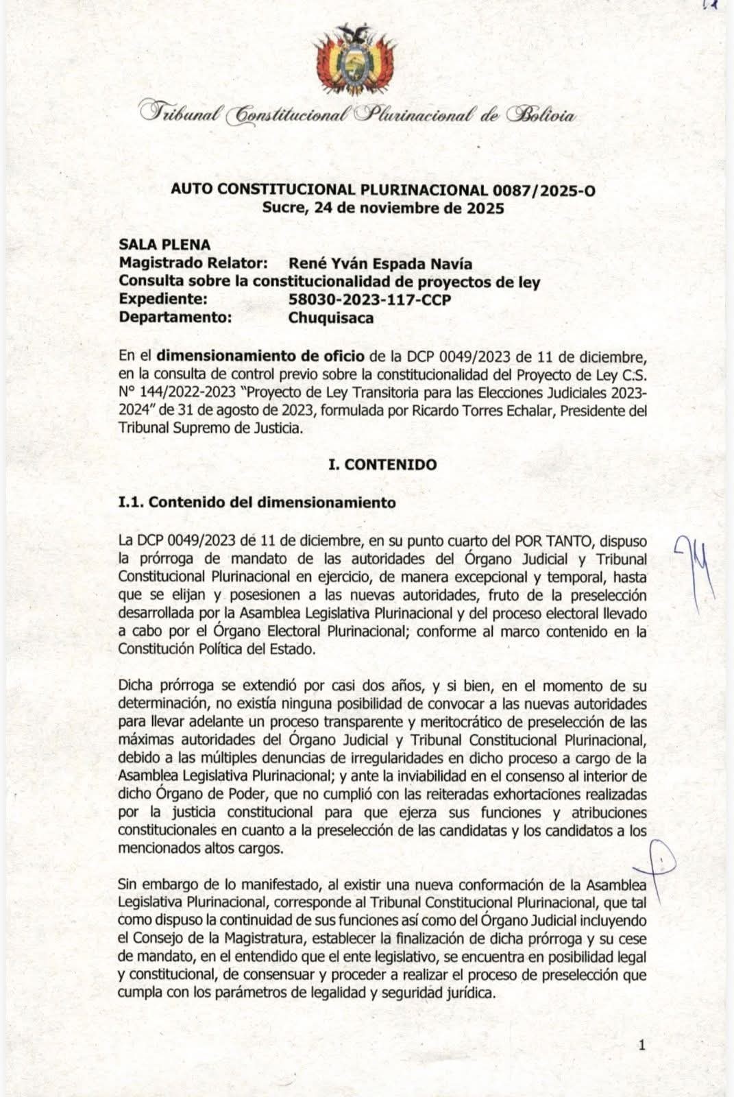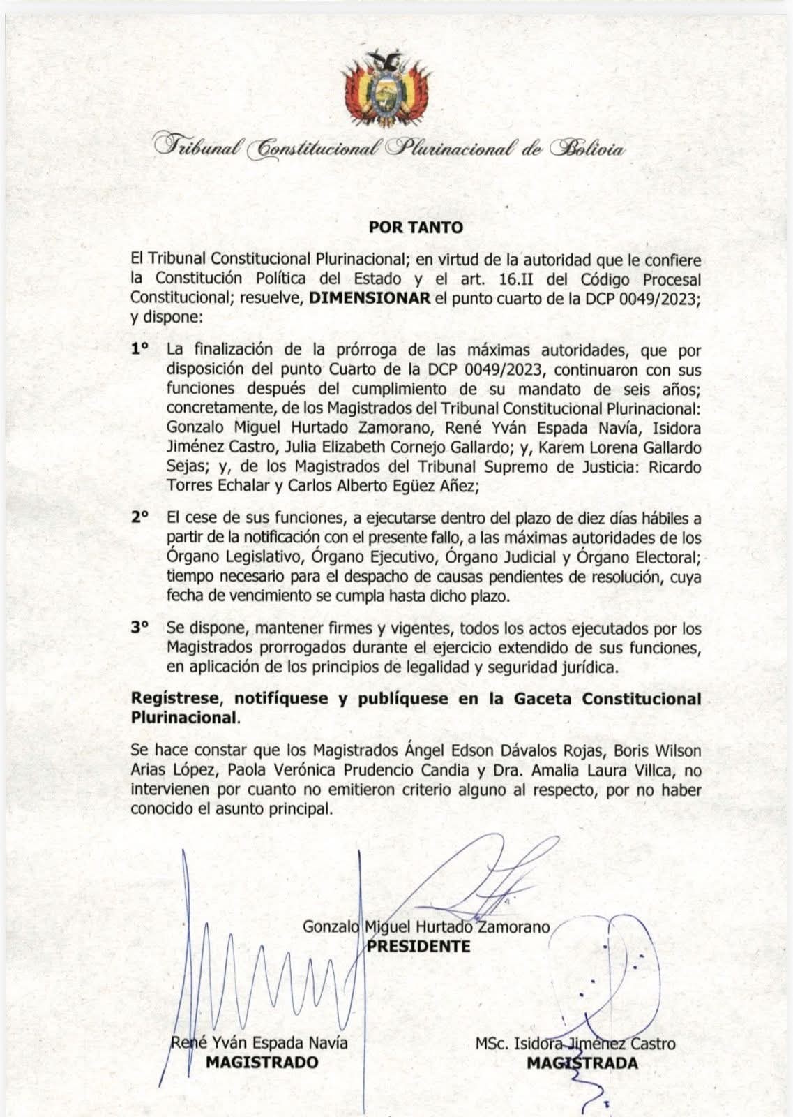 Sucre, 25 de noviembre de 2025 .- El Tribunal Constitucional Plurinacional (TCP) emitió un fallo determinante que instruye el fin de la prórroga de mandato de las principales autoridades del Órgano Judicial y del propio TCP, quienes permanecen en funciones desde diciembre de 2023 ante la falta de nuevas elecciones. La resolución establece que los magistrados prorrogados deberán cesar sus funciones en un plazo máximo de 10 días hábiles desde la notificación oficial.